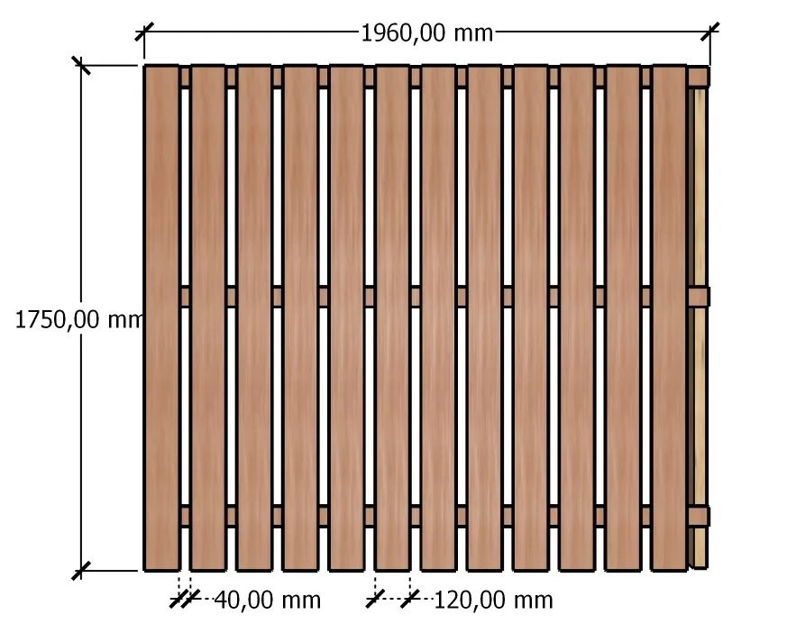 - Vertikaalne laudis: termomänd SH 21 x 120 mm, 24 tk (paigaldatud 40 mm vahedega)